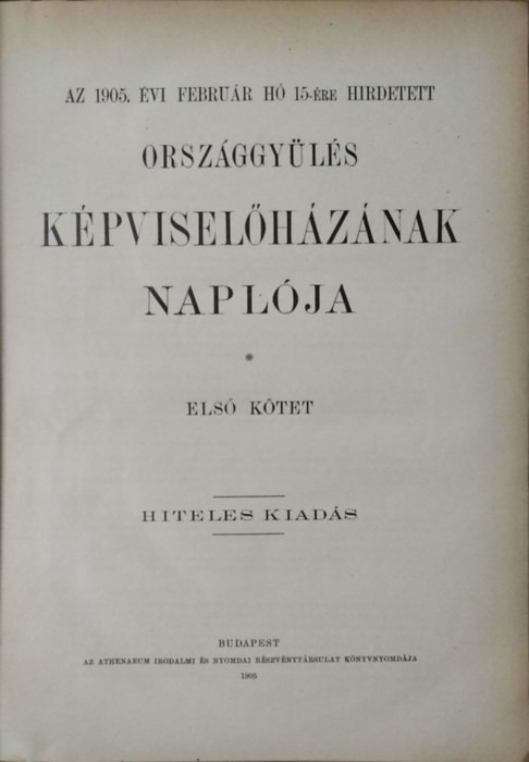 Az 1905. évi február hó 15-ére hirdetett Országgyűlés Képviselőházának naplója, I-II. (Egy kötetben)