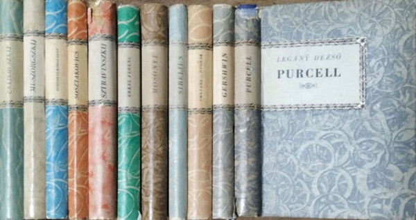 kissé kopott borítójú kötetek; a Purcell és Sztravinszkij kötetek gerince tetején sérült, kissé hiányos