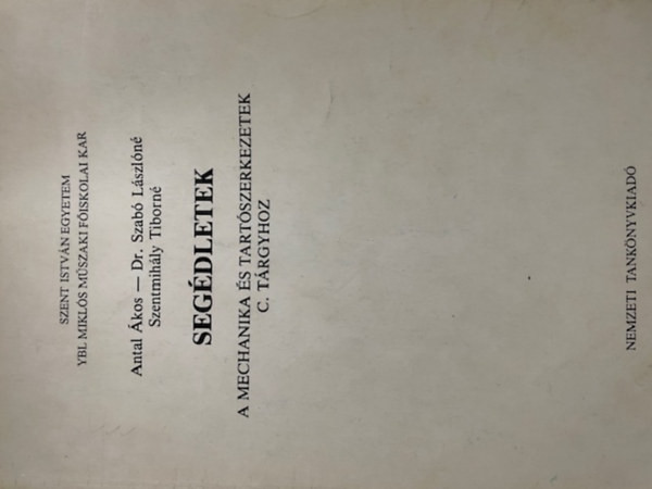 Antal Ákos; Szabó Lászlóné: Segédletek a mechanika és tartószerkezetek c. tárgyhoz (kézirat)