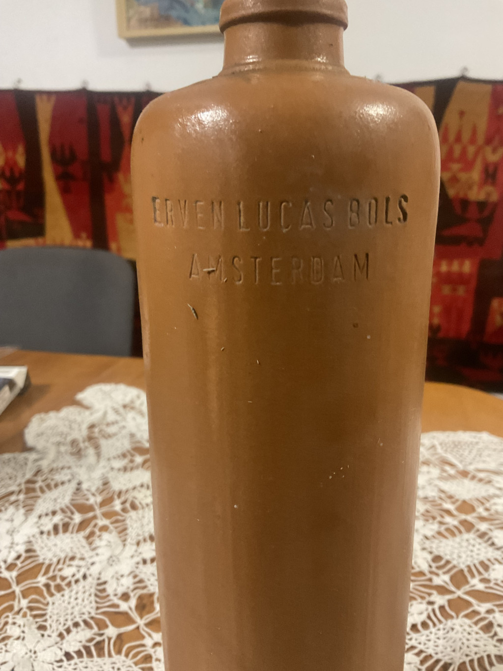 Antik nagyméretű literes cserép ásványvizes palack 30 cm - Lucas Bols örökösei Amsterdam