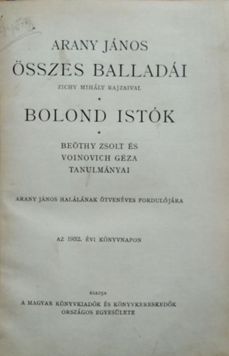 Arany János halálának ötvenéves fordulójára az 1932. évi könyvnapon kiadja a Magyar Könyvkiadók és Könyvkereskedők Országos Egyesülete. Beöthy Zsolt és Voinovich Géza tanulmányaival.