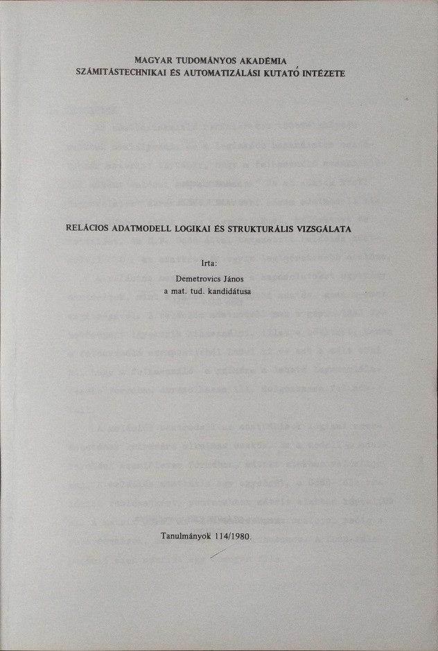Demetrovics János: Relációs adatmodell logikai és strukturális vizsgálata