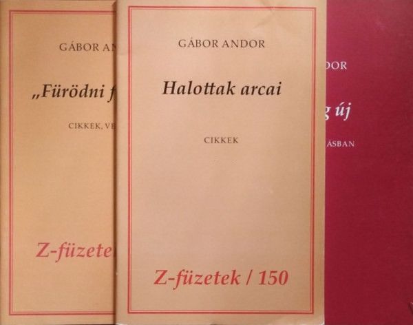 1. "Fürödni fognak" - Cikkek, versek (Z-füzetek 146) 2. Halottak arcai - Cikkek (Z-füzetek 150) 3. Régi meg új - Színmű 3 felvonásban