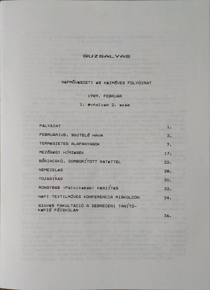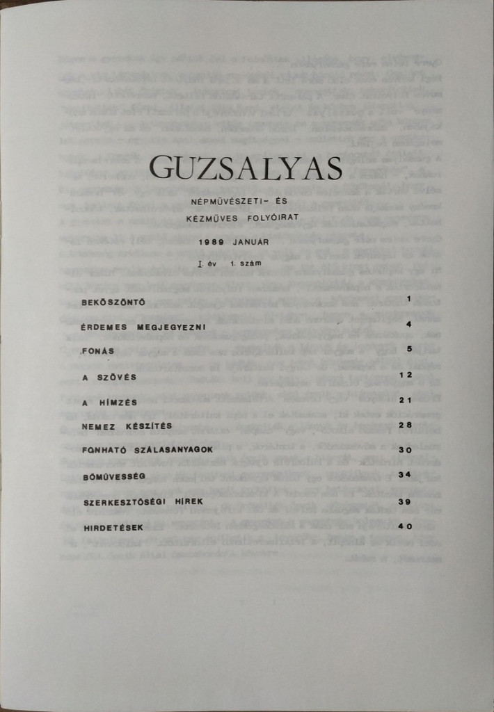 Guzsalyas - Népművészeti és kézműves folyóirat, I. évf. 1-2. szám (1989. január-február).