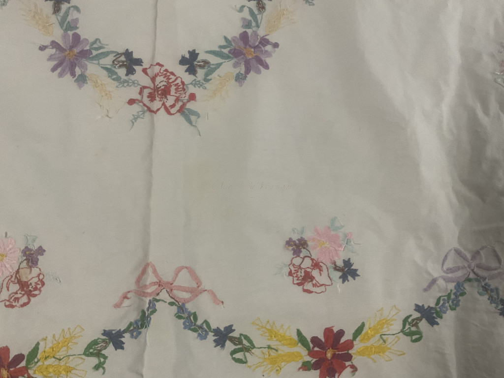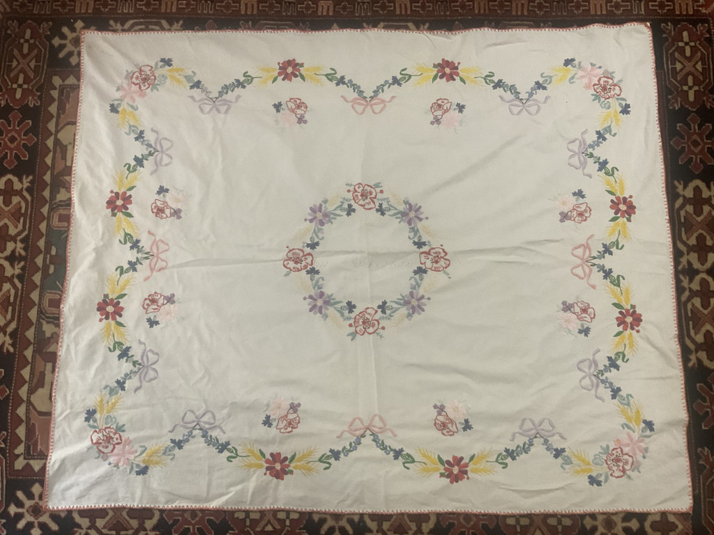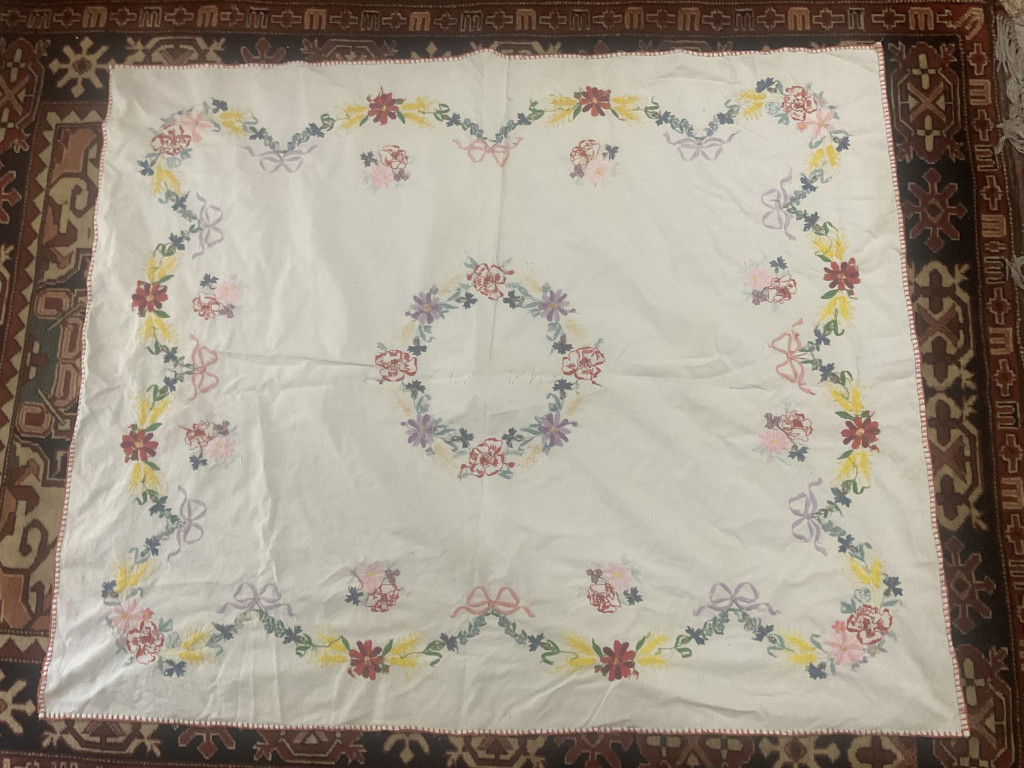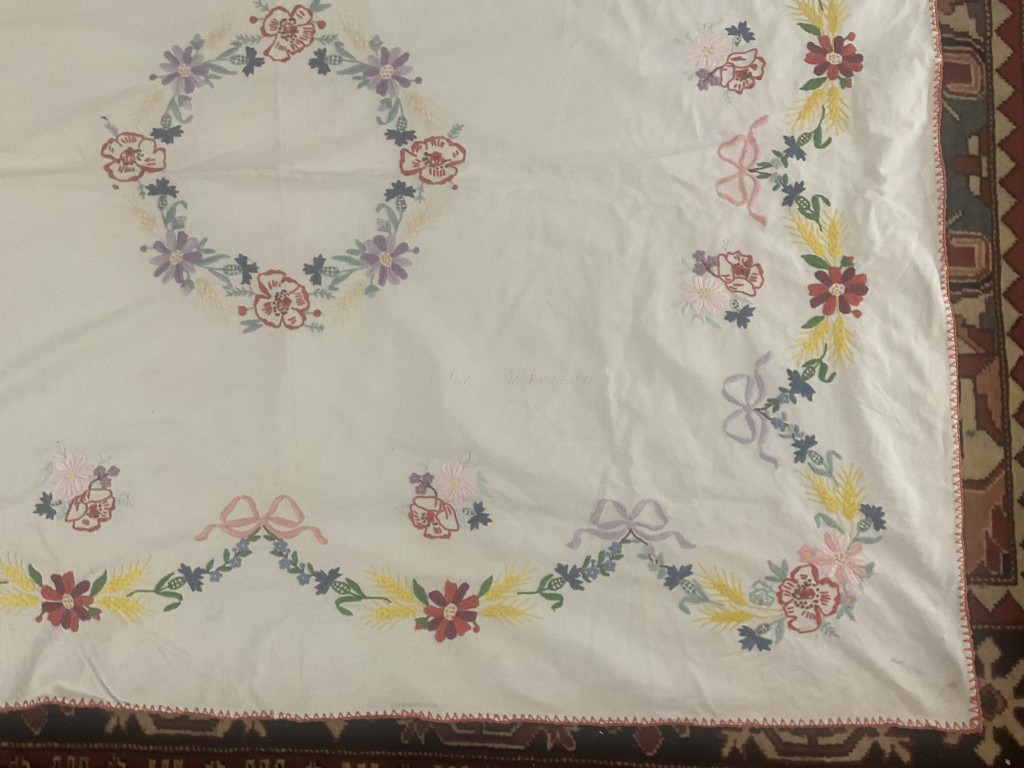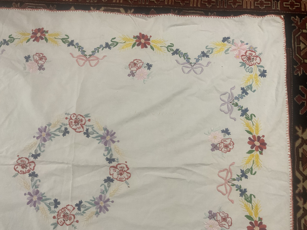 Hímzett nagyméretű terítő