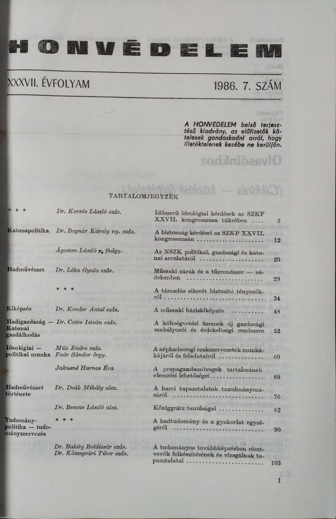 Honvédelem, 1986/7. (XXXVII. évf. 7. sz.) - Udovecz György (szerk.)