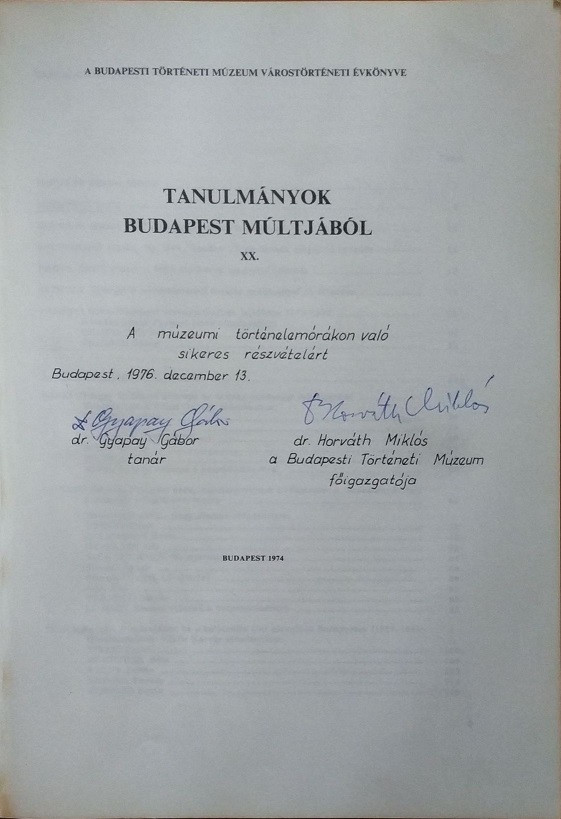 Horváth Miklós (szerk.): Tanulmányok Budapest multjából XX.