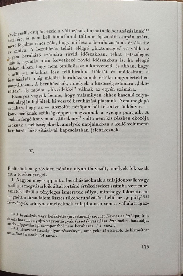 Első ízben jelenik meg magyar nyelven a modern közgazdasági irodalomnak ez az alapvető munkája, amely fordulatot hozott a közgazdasági vizsgálódásokban. (Angol eredetiben először 1936-ban, azt követően pedig 11 alkalommal adták ki.) Az 1929-33-as nagy gazdasági válság után a közgazdaságtan kiemelkedő művelői számára bebizonyosodott, hogy a piacgazdaság súlyos ellentmondásokkal terhes és a közgazdaságtan korábbi módszere és szemlélete alkalmatlan arra, hogy megoldást nyújtson a társadalmi-gazdasági konfliktusok áthidalására. Keynes e könyvében átfogó koncepciót adott, amellyel megalapozta az állammonopolista kapitalizmus közgazdasági ideológiáját. Munkája nyomán bontakoztak ki a gazdasági növekedés, a dinamikus fejlődés feltételeit vizsgáló modern nyugati elméletek.