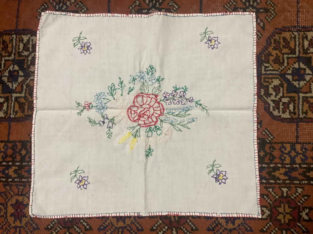 Kisméretű hímzett terítő