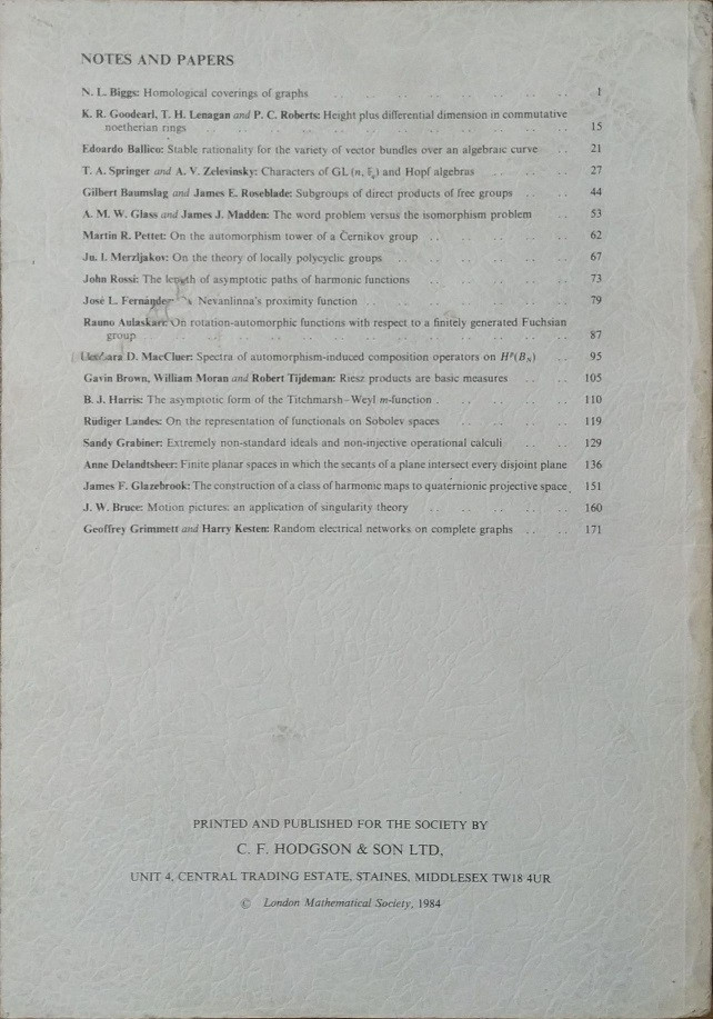 N. G. Lloyd - A. O. Morris (eds.): Journal of the London Mathematical Society, Second Series, Vol. 30 Pt. 1 (August 1984)