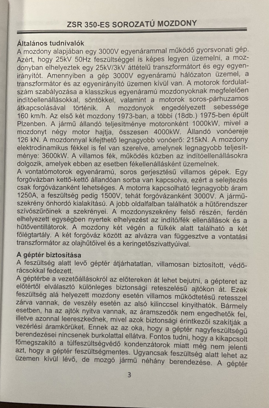 ZSR 350-ES SOROZATÚ MOZDONY......................... 3
