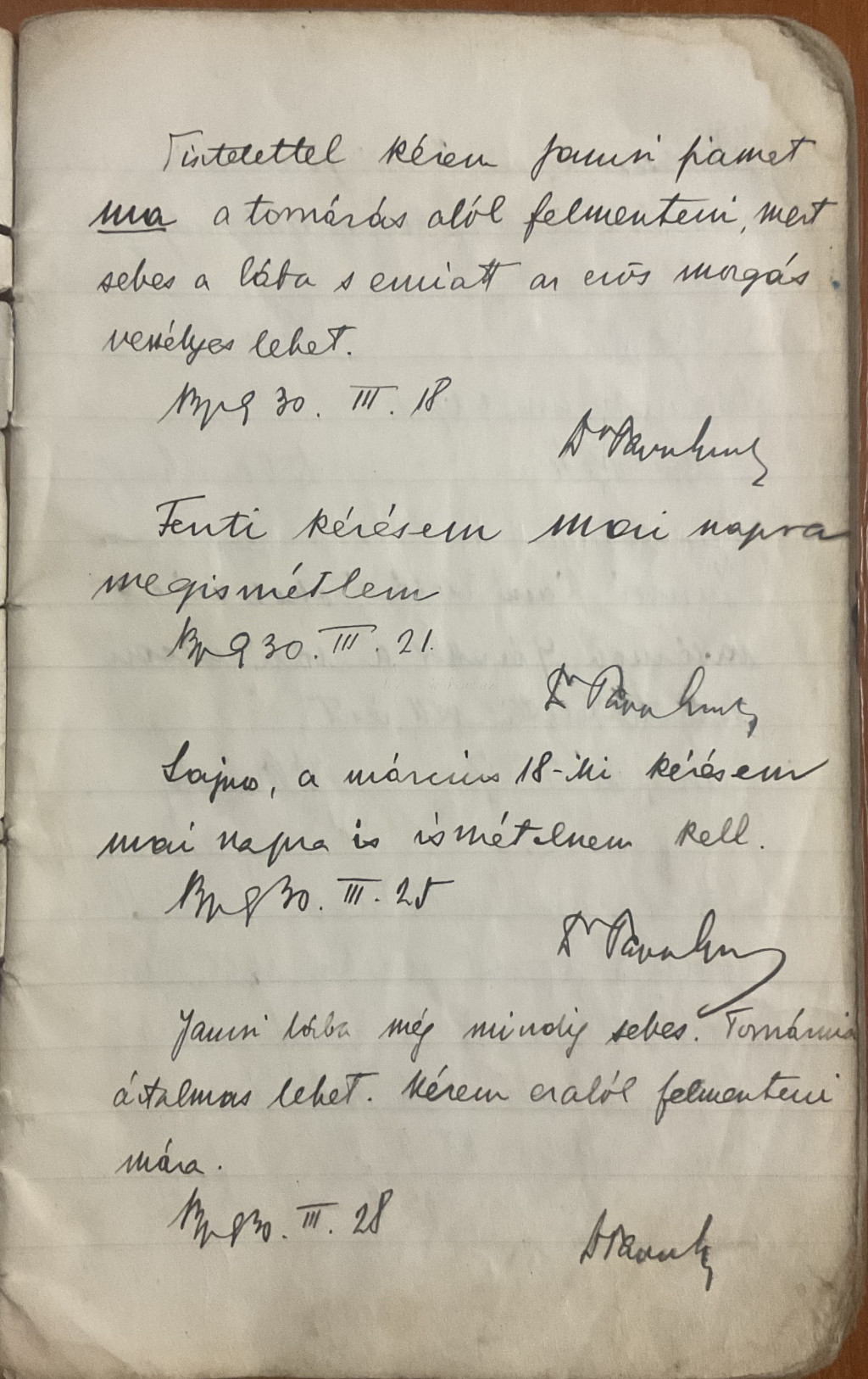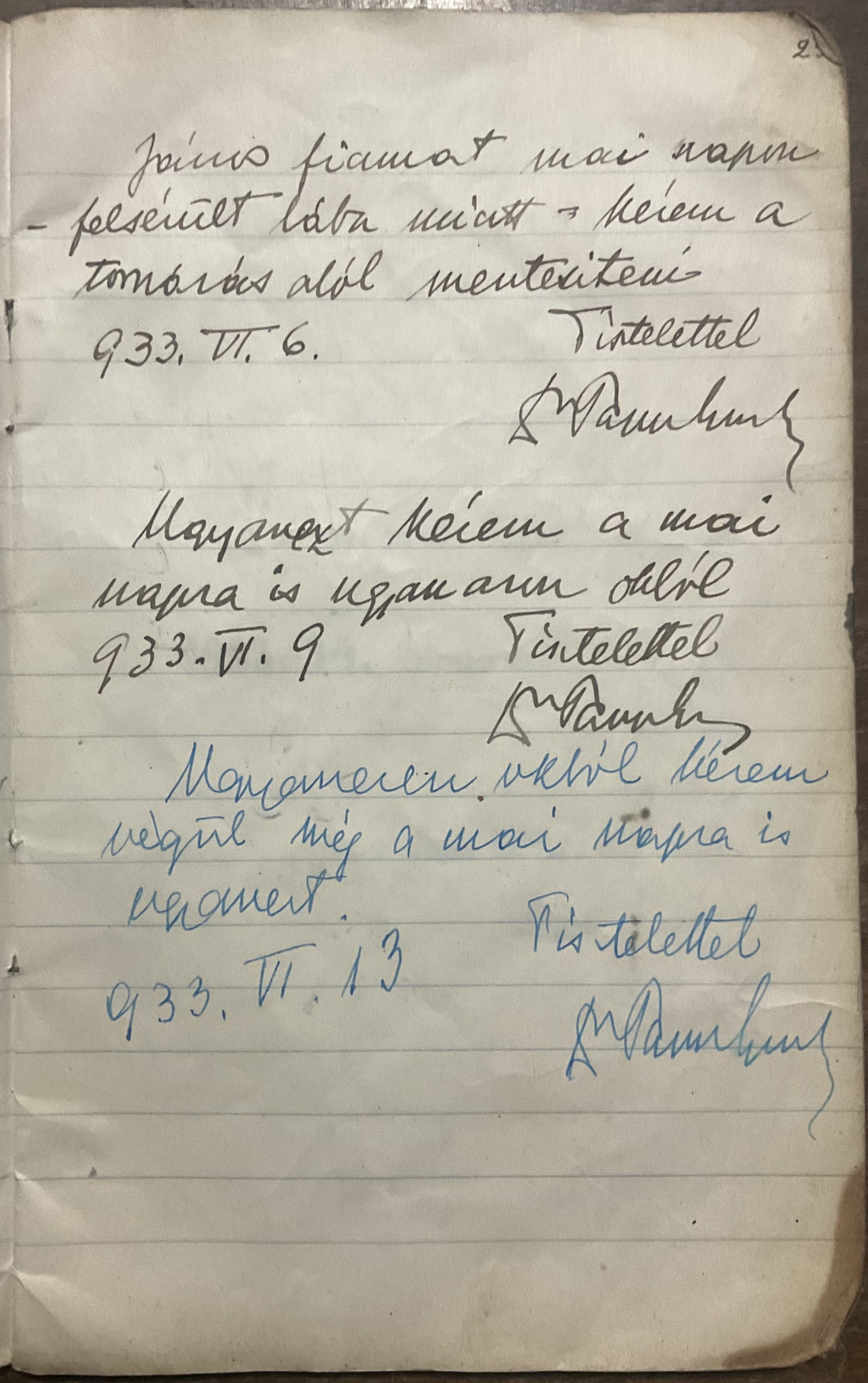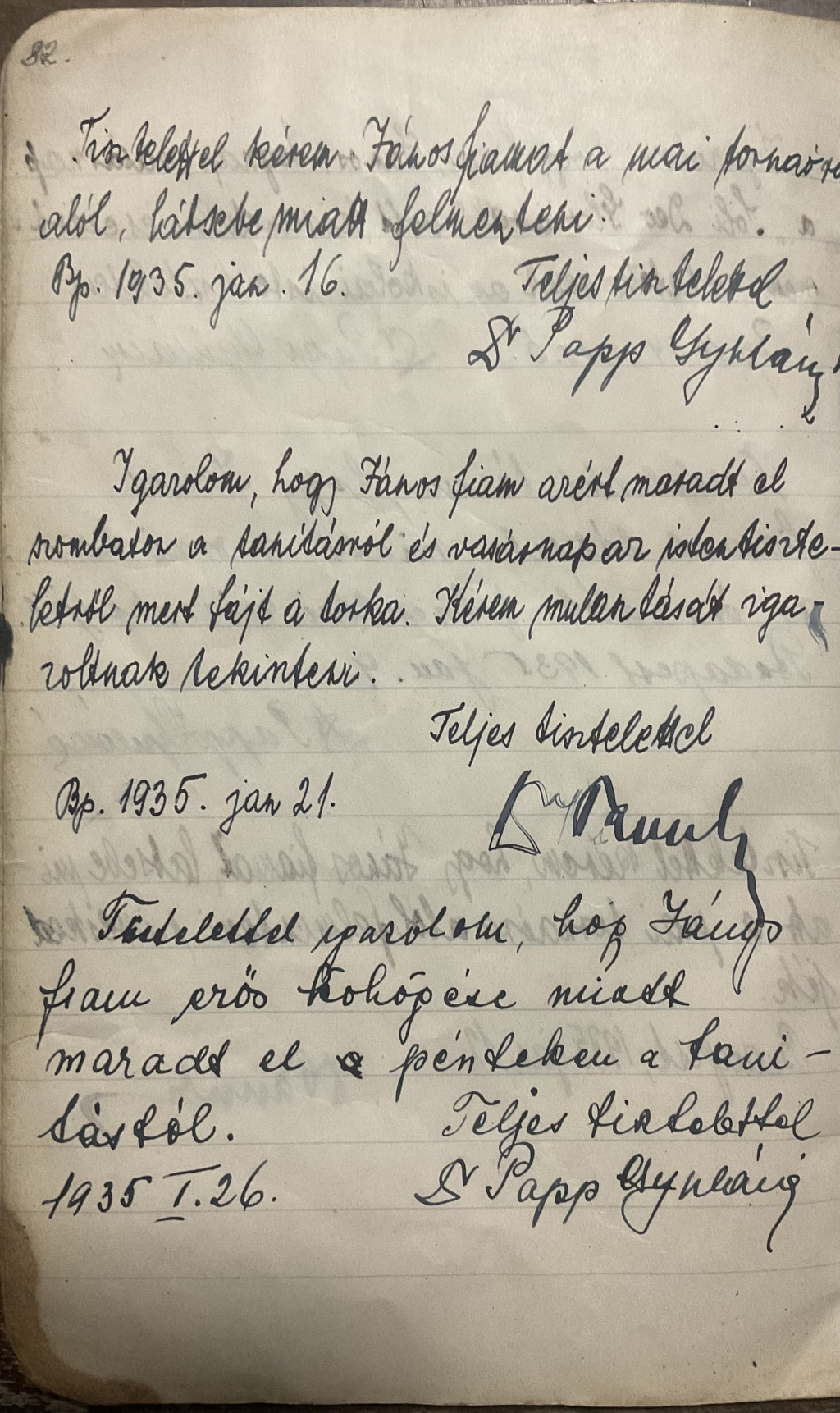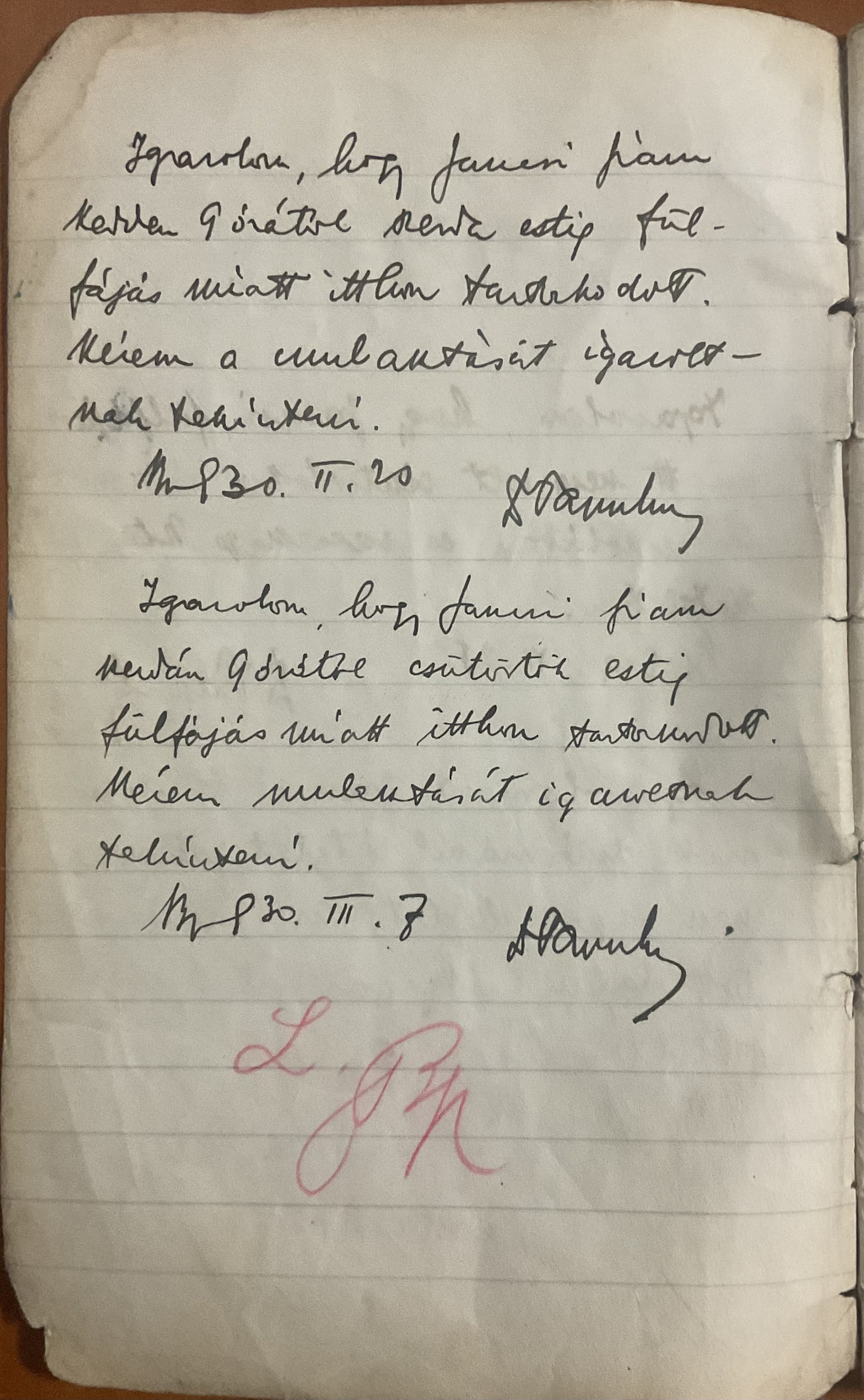Papp János üzenenőfüzete az 1930-as évekből