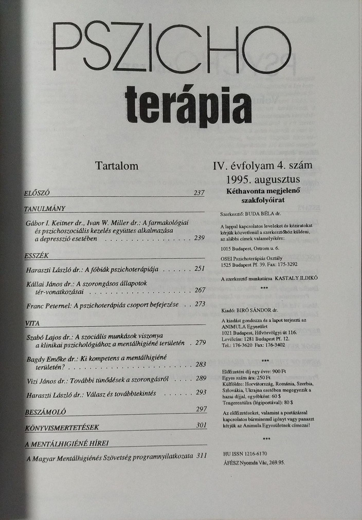 Pszichoterápia, IV. évf. 4. szám (1995. augusztus) - Buda Béla (szerk.)