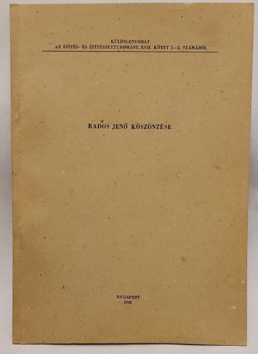 Rados Jenő köszöntése (különlenyomat) - Gerő László, Bardoly István (szerk.), Dragonits Tamás