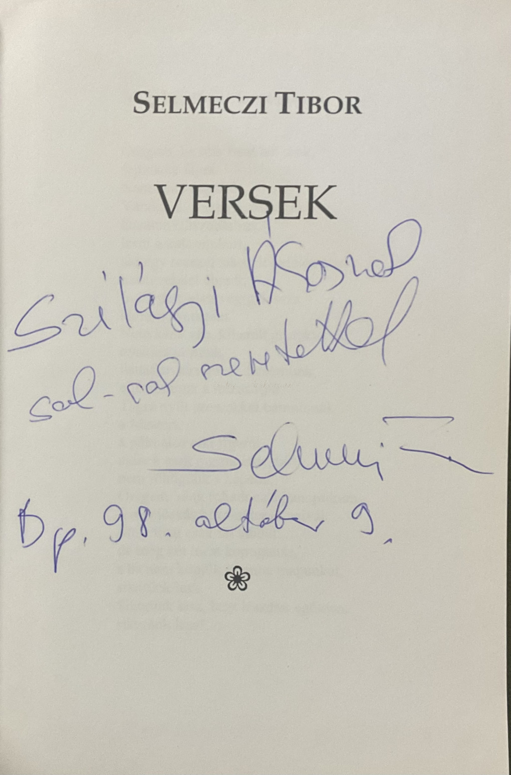 Selmeczi Tibor: Selmeczi Tibor -versek - Dedikált!