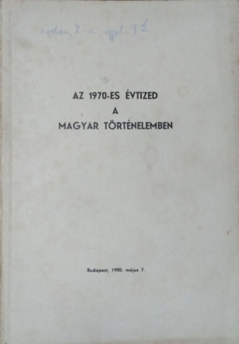 Stier Miklós: Az 1970-es évtized a magyar történelemben