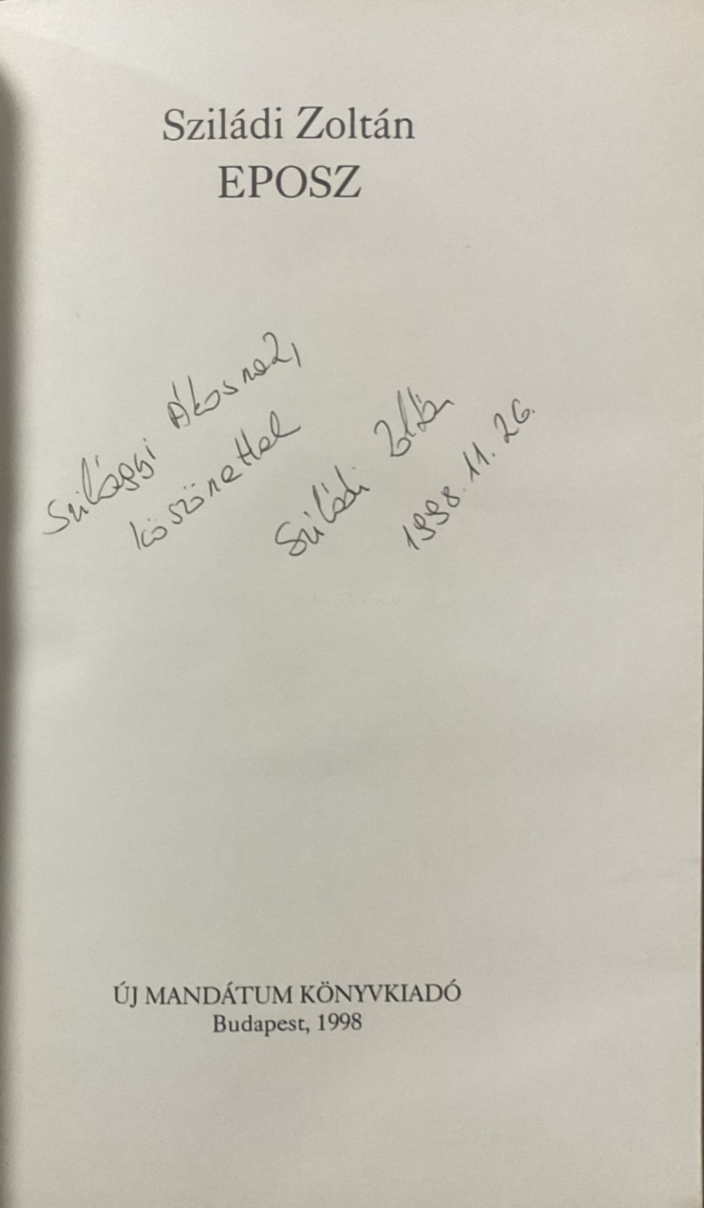 Szilágyi Ákos író részére dedikált; saját fotó;
