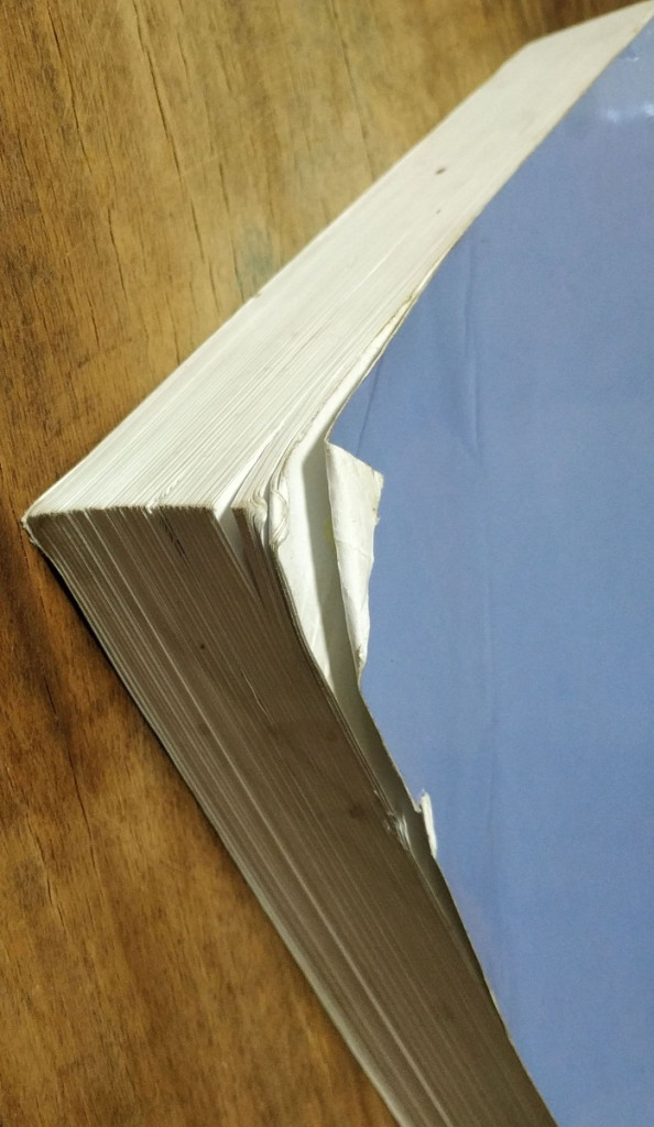 erősen gyűrött, kissé sérült borítólapok; foltos felső és oldalsó, erősen foltos alsó lapélek; a borítólapok belső oldalai, az első 5 és az utolsó kb. 15 lap foltos; helyenként gyűrött lapok