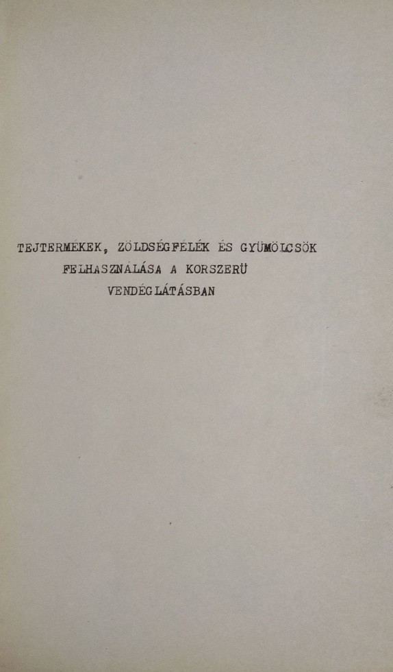 Unger Károly: Tejtermékek, zöldségfélék és gyümölcsök felhasználása a korszerű vendéglátásban