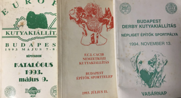 Európa kutyakiállítás - Budapest 1993. május 7-8-9. F.C.I. CACIB Nemzetközi Kutyakiállítás - Budapest - 1993. július 11. Budapest Derby Kutyakiállítás - 1994. november 13.