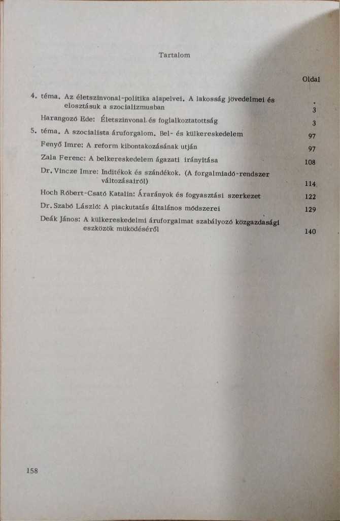 Olvasmányok az MSZMP Marxizmus-Leninizmus Esti Egyetemek Szocializmus politikai gazdaságtan szakosító tanfolyam II. évfolyam hallgatói részére, az 1969-1970-es tanévre. Összeállította és jóváhagyta a Marxizmus-Leninizmus Esti Egyetemének Magyar és Nemzetközi Munkásmozgalom Története Tanszéke. Segédanyag, I. rész 2. füzet 4. téma: Az életszínvonal-politika alapelvei - A lakosság jövedelmei és elosztásuk a szocializmusban 5. téma: A szocialista áruforgalom - Bel- és külkereskedelem