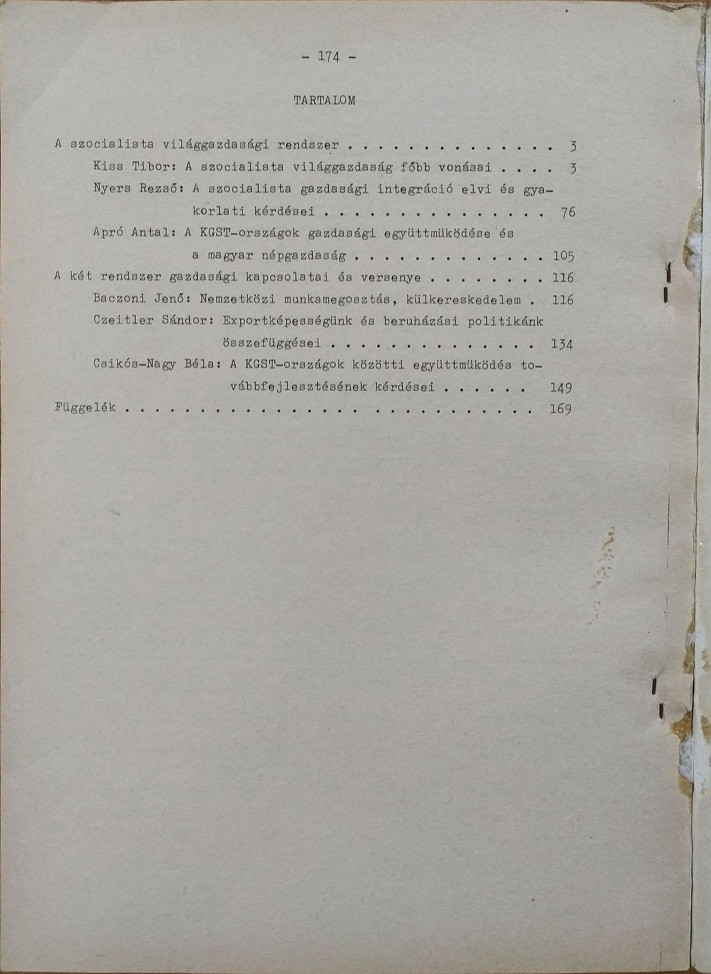 Olvasmányok az MSZMP Marxizmus-Leninizmus Esti Egyetemek Szocializmus politikai gazdaságtan szakosító tanfolyam II. évfolyam hallgatói részére, az 1969-1970-es tanévre. Összeállította és jóváhagyta a Marxizmus-Leninizmus Esti Egyetemének Magyar és Nemzetközi Munkásmozgalom Története Tanszéke. Segédanyag, II. rész 2. füzet A szocialista világgazdasági rendszer A két rendszer gazdasági kapcsolatai és versenye