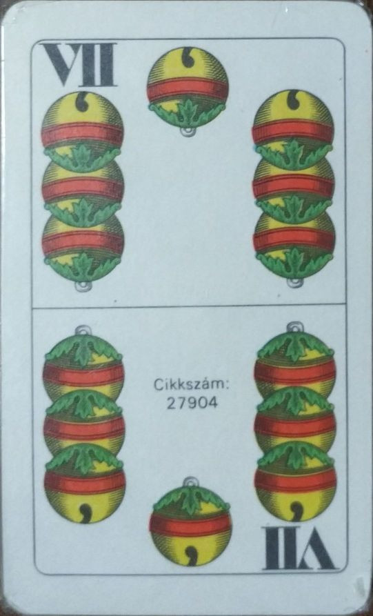 Eredeti magyar kártyapakli, gyári fóliában, bontatlan állapotban. Cikkszám: 27904. A kártyák nem voltak használva, megkímélt, gyűjtői minőség. Klasszikus magyar kártyaminta, hagyományos kivitel, doboz nélkül, fóliázva.